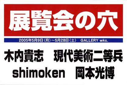 2005年のグループ展。木内貴志の初キュレーション展覧会。岡本光博氏の幻の企画展「平成天覧会」をベースとし、テーマを「穴」として開催。