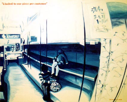木内貴志作品集TOP > 木内貴志とその時代〜オイルショックからY2Kまで〜 > Oil "Shock"on canvas (洗剤はお一人様一つ限り) Oil "Shock"on canvas (洗剤はお一人様一つ限り)2000年 キャンバスに油彩 1305mm×1620mm