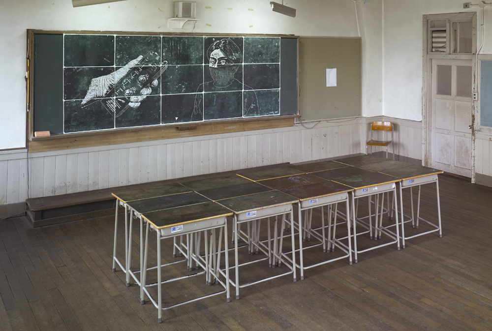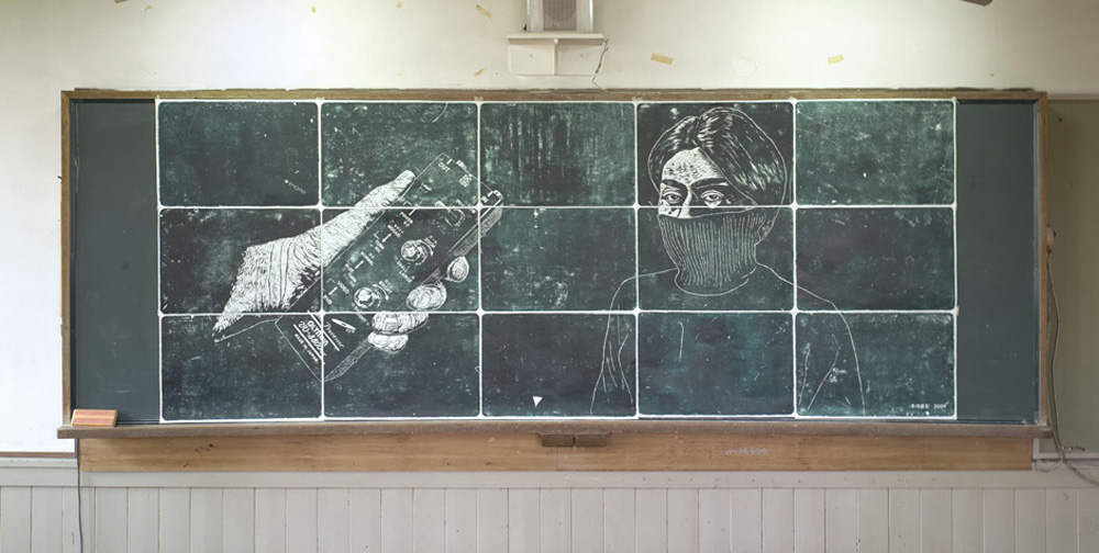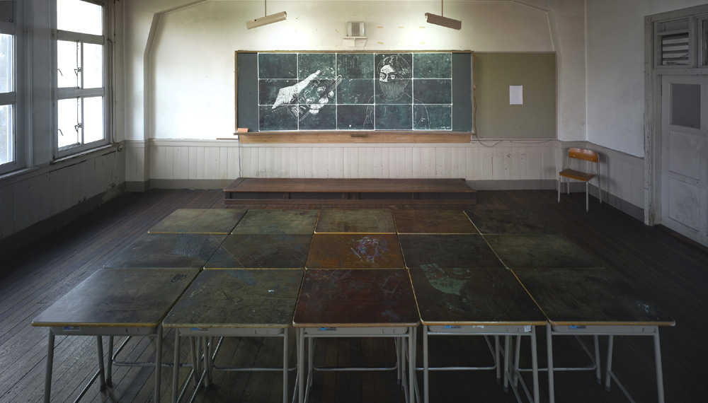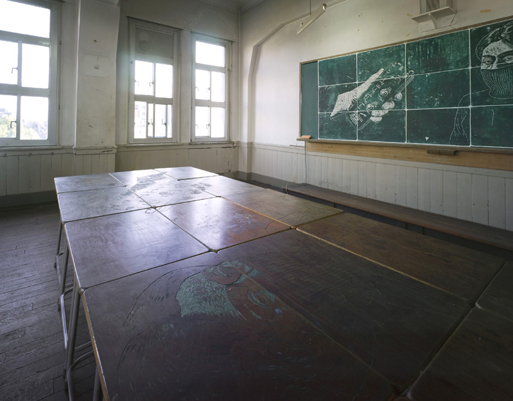 木内貴志作品集TOP > After School 放課後の展覧会 > 中学性日記(モザイクとレジェンド) 中学性日記(モザイクとレジェンド)Junior high school sex diary(mosaic & the legend)2009年 学校机、木版画紙、油性インク 120cm×300cm×70cm(机部分)125cm×305cm(版画部分)![]() 過去に何度か制作した、使い古しの学校机の天板を版にして刷った版画作品です。