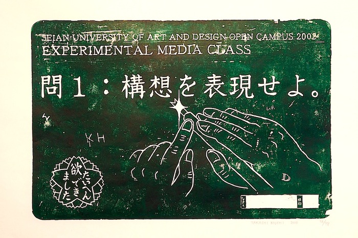 木内貴志作品集TOP > SEIAN FRONTIER volume.2 > 構想表現クラスの為のポスター 構想表現クラスの為のポスターPoster for Experimental media class2010年 学校机、和紙に油性インク![]() ![]() ![]() ![]() ![]()